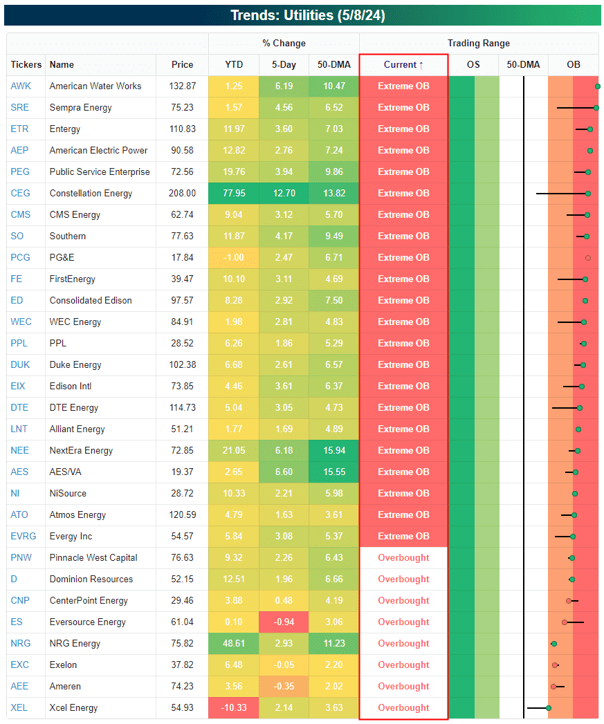 최근 몇 달 동안 유틸리티 기업의 주가가 상승한 것은 AI 붐을 지원하는 전력 센터 서비스를 통해 혜택을 받을 것이라는 희망 때문이었다.